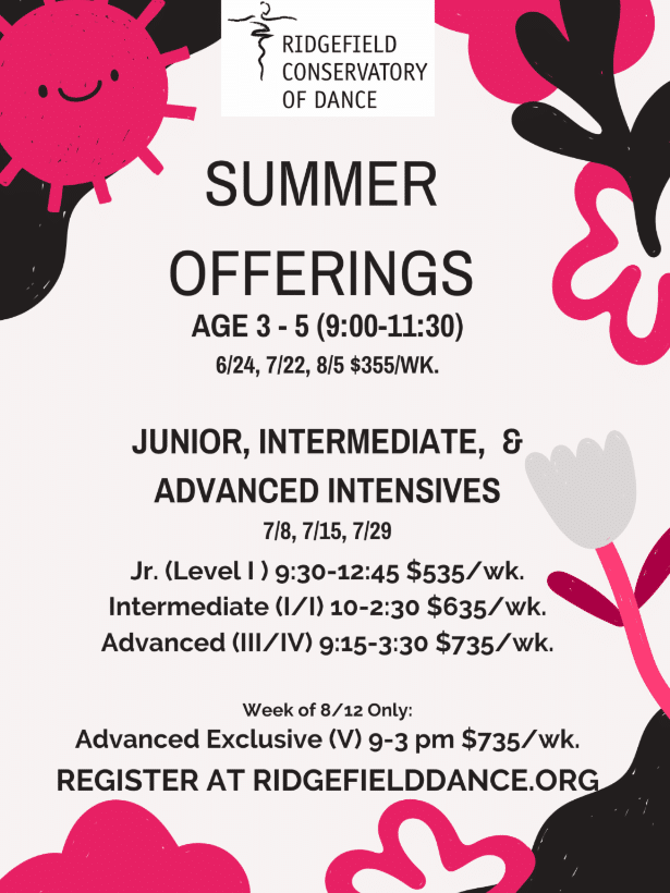 Registration for Ridgefield Conservatory of Dance summer programs is currently underway! Below are descriptions for the classes being offered. You can register at https://www.ridgefielddance.org/